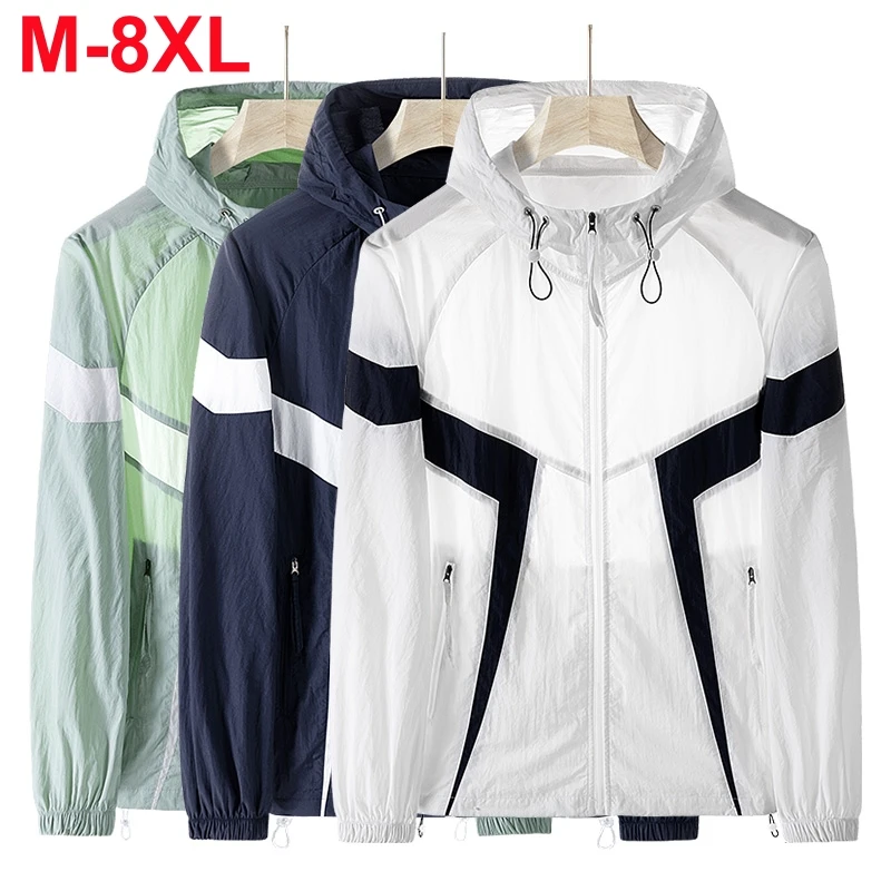Plus Size 8xl Summer Anti-UV Men Skin Coats Ultra-Light Thin Outdoor Sunscreen UPF50+ Sun Proof Hooded Windbreaker 150kg Jackets